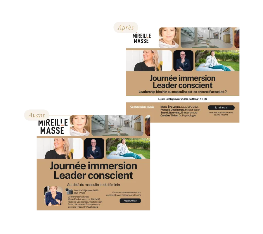 → Tes visuels sont alignés, stratégiques, cohérents avec ton identité. Tu gagnes en confiance, en efficacité, en crédibilité.